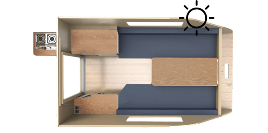 Der Shelter macht seinem Namen alle Ehre. Ein kompakter Caravan mit großem Herz, der sich durch praktisches Design und eine einzigartige Optik auszeichnet