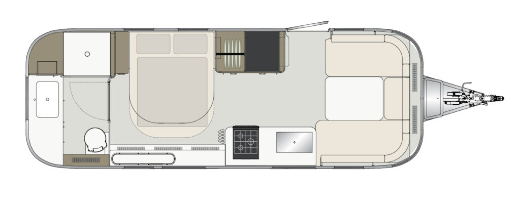 Der neue Airstream International 25IB vereint eleganten Amerikanischen Style mit europäischer Technik in einem aufregenden neuem Grundrisskonzept. Mit welchem Raumgefühl knapp 17qm Wohnfläche gestaltet sein können, erleben Sie schon bei ersten Eintreten. Helle Oberflächen aus warmen braun- und beigefarbenen Holztönen im Zusammenspiel mit einem Boden aus gewebten Vinyl vermitteln ein luxuriöses Wohlfühlambiente.