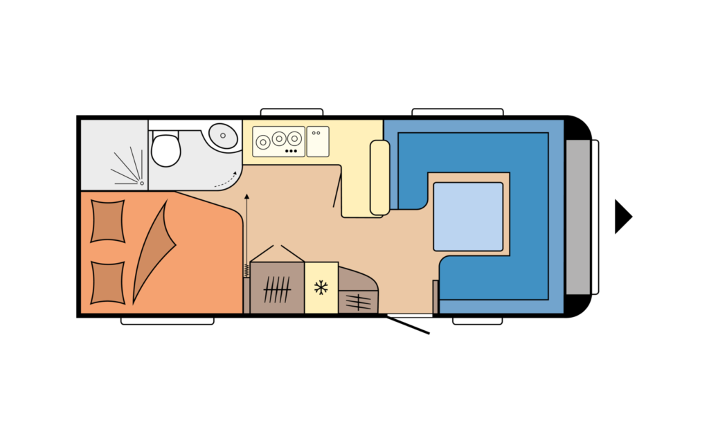 Insgesamt 12 Modelle bieten viel Flexibilität. 7 Grundrisse mit über 8 Metern Länge punkten mit einer extra Portion Platz. Ob Einzelbetten, Doppelbett oder Etagenbetten – Sie haben die Wahl. Der PRESTIGE 650 KFU verfügt sogar über ein separates Kinderzimmer mit eigener Kinder-Sitzgruppe. Große Küchen mit viel Stauraum und Apotheker-Auszügen sorgen auch im Kochbereich für jede Menge Entfaltungs-Freiheit.